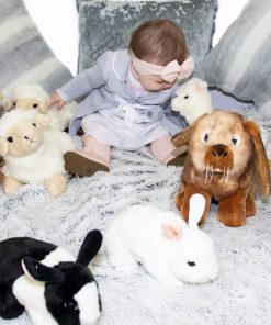 Barbarella is an exquisitely soft and realistic handcrafted soft plush toy sheep. in a standing position.