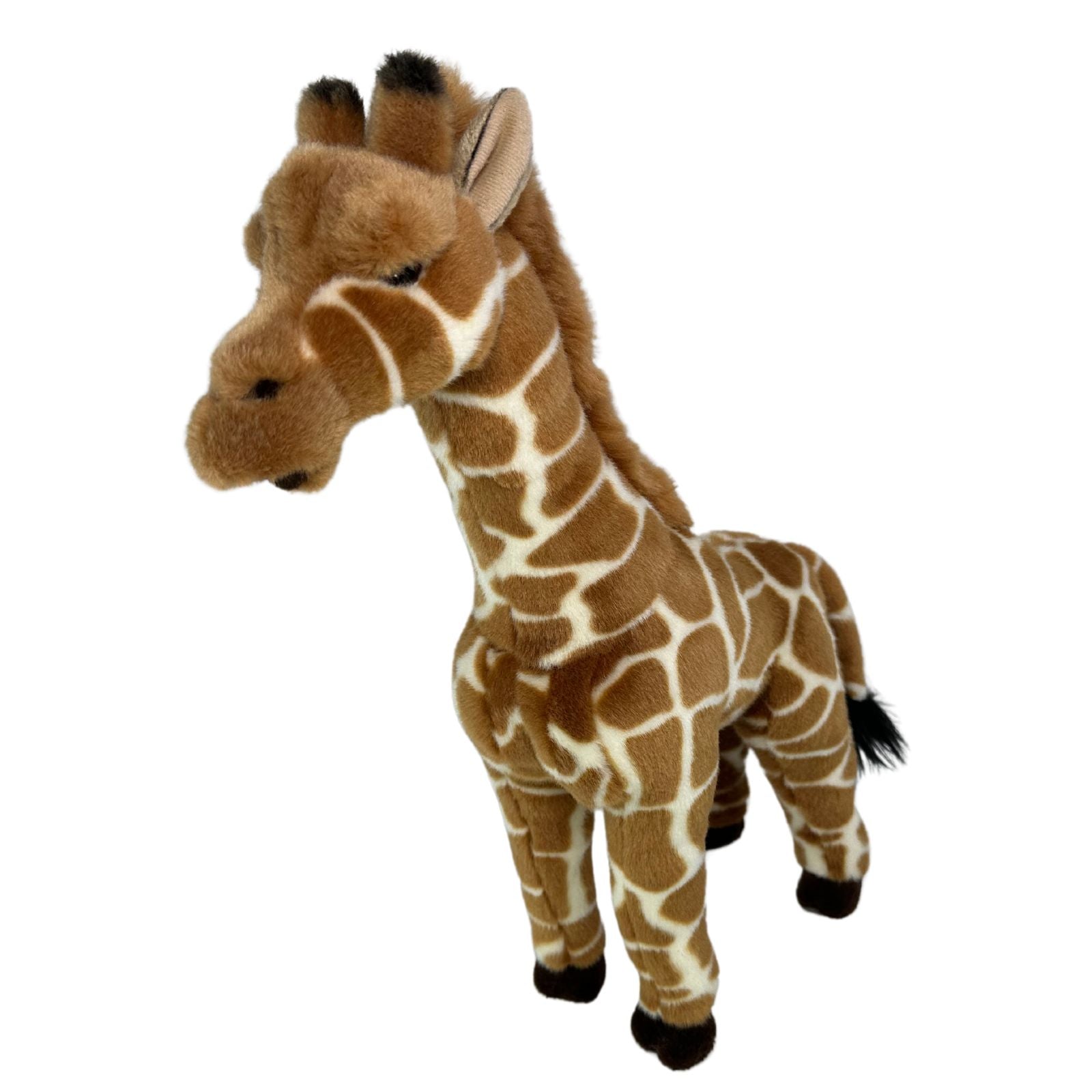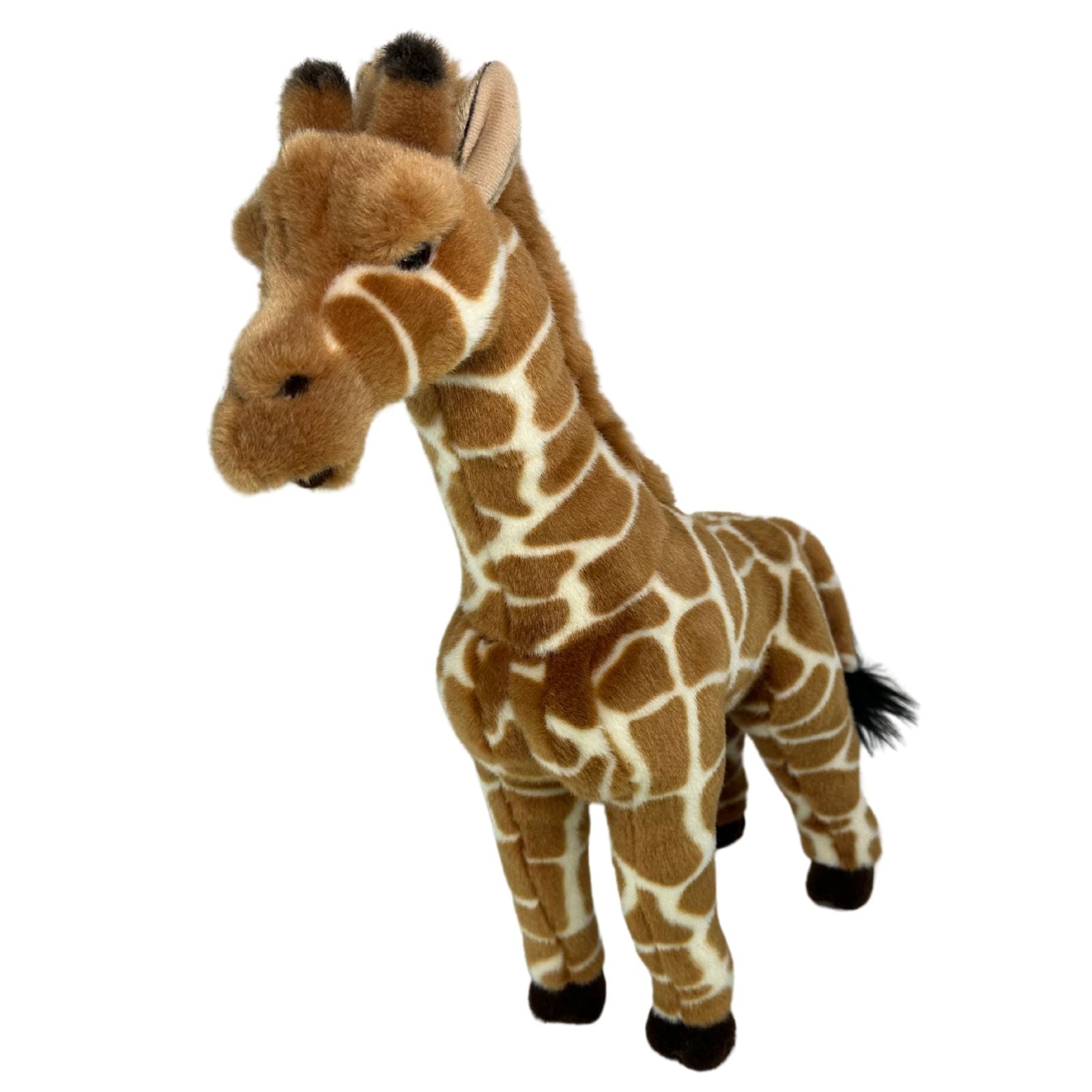 Elliotis an exquisitely soft and realistic soft plush toy Giraffe. The giraffe is the tallest land animal. with a neck up to 1.83m long and have just seven neck vertebrae. like humans. They can run up to 56 kph in short bursts. Their long tongue helps me reach leaves high in trees. They drink water only every few days. getting most moisture from plants. They also have a unique sleep pattern. often napping for just a few minutes while standing.