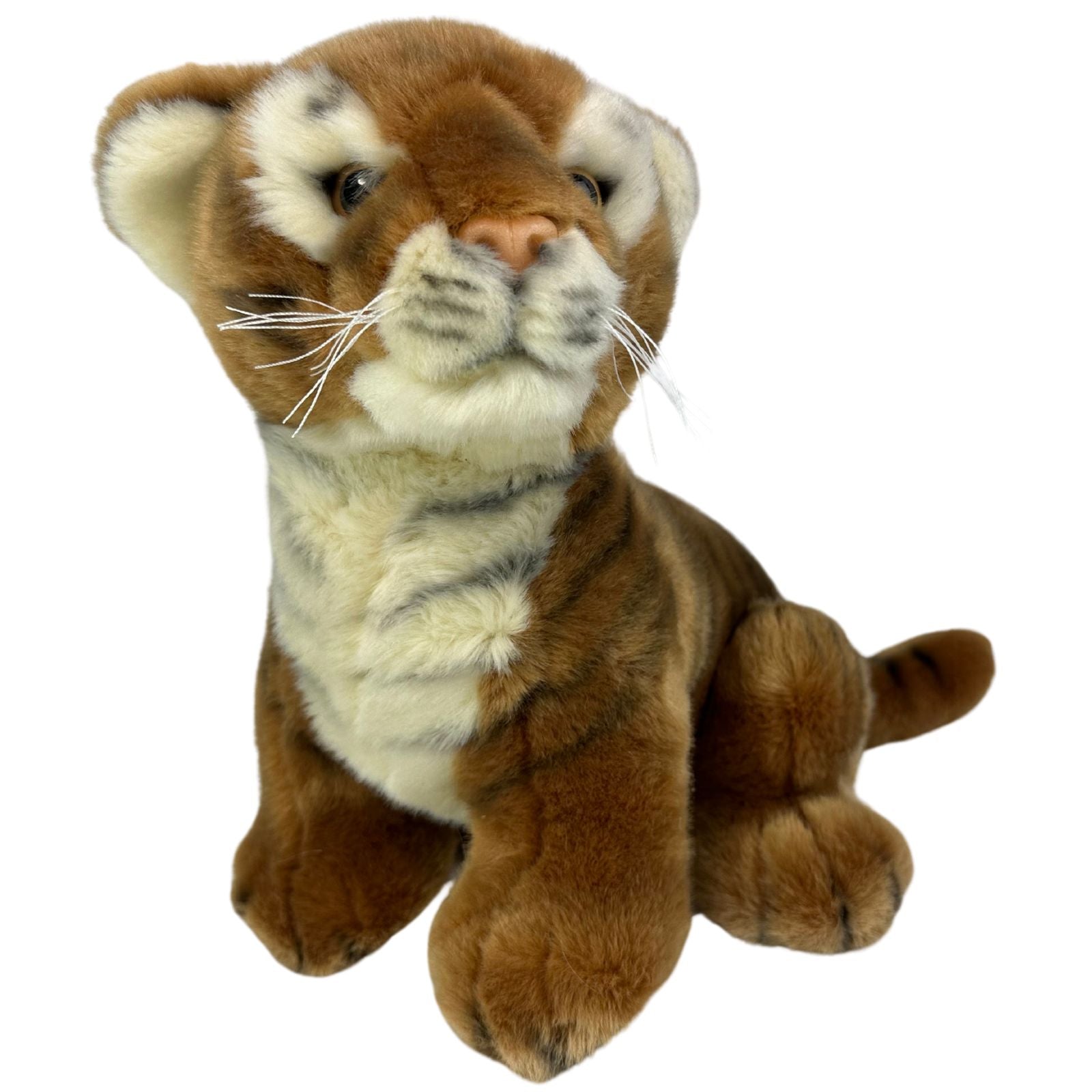 Tony is an exquisitely soft and realistic soft plush toy brown tiger. The brown Tiger is a fierce and powerful predator. known for its strength. agility. and majestic stripes. Their brown coat helps them blend in. making them a stealthy hunter. They are also a great swimmer. and each of their stripes is as unique as a fingerprint- no two tigers have the same pattern!